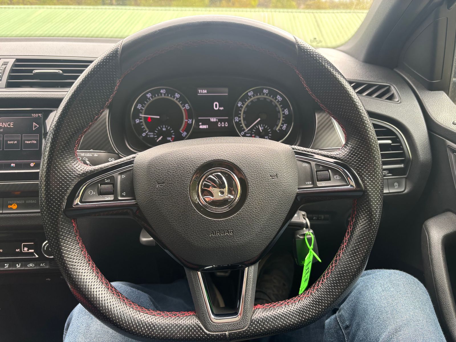 - Sports Leather Multi-Function Steering Wheel with Red Stitching